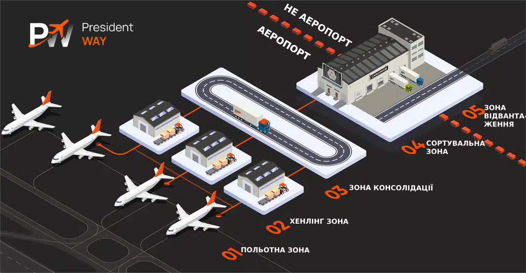 Авіаперевезення – це найшвидший спосіб перевезення товарів на великі відстані, але він також і найдорожчий. Авіаперевезення перевозять близько 0,05% усіх товарів, що перевозяться по всьому світу. Однак, якщо подивитися на це з іншого боку, авіаперевезення перевозять близько 35% вартості всіх відправлених товарів. У цьому контексті President Way пропонує персональні послуги з хендлінгу та авіадоставки вантажів.
